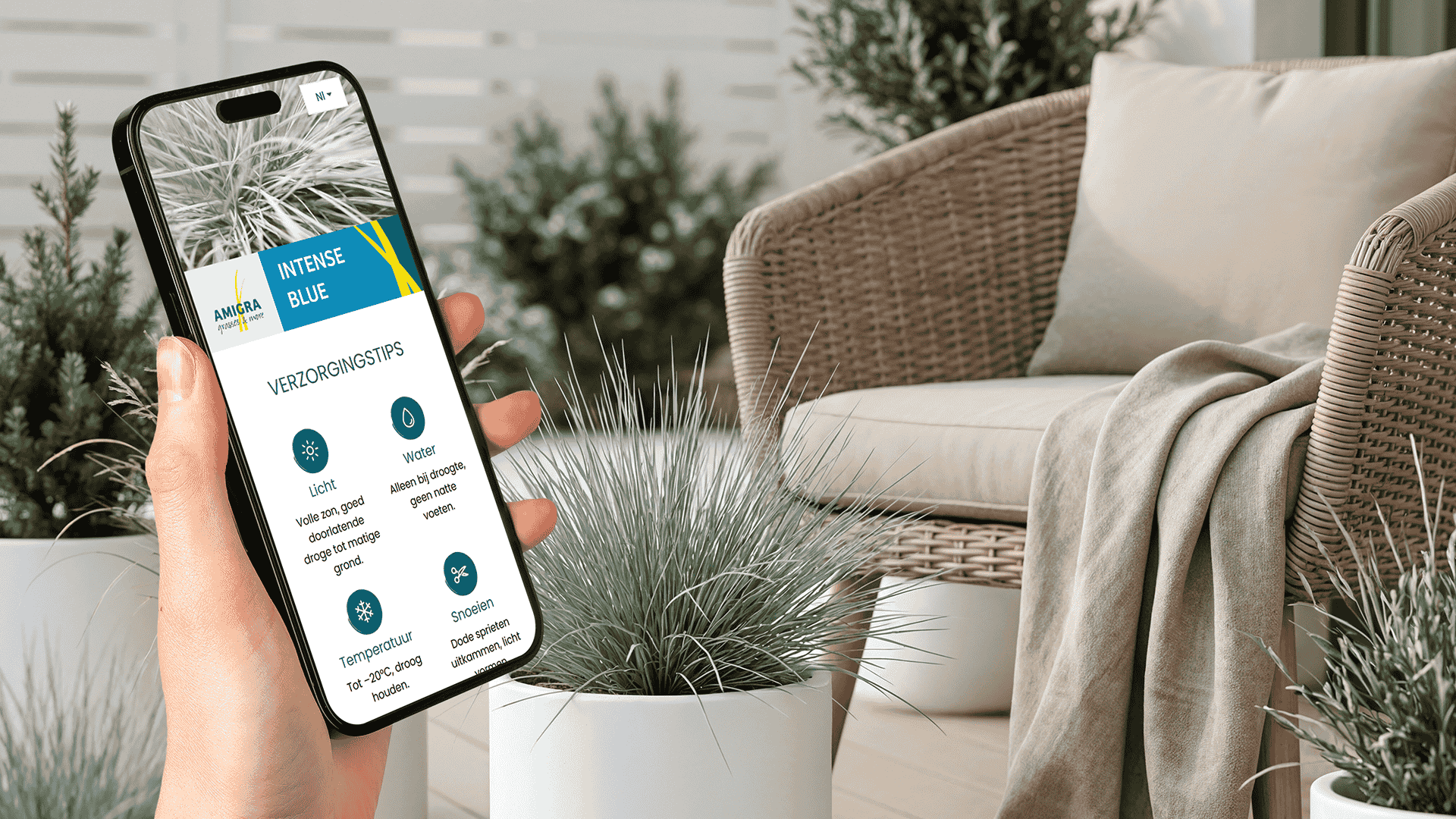 Achter de QR-code schuilt een mobielvriendelijke pagina met duidelijke verzorgingstips, aangevuld met een AI-chatbot met uitgebreide kennis van de Amigra Grasses-productlijn. Consumenten kunnen daarnaast hun gewenste tuinstijl invoeren, waarna de chatbot siergrassen en combinaties adviseert die perfect bij deze stijl passen. Zo wordt verzorging niet alleen makkelijker, maar ook inspirerender.